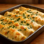 Warm, comforting Creamy White Chicken Enchiladas featuring tender tortillas, savory shredded chicken, and a luscious white sauce for a delightful meal.